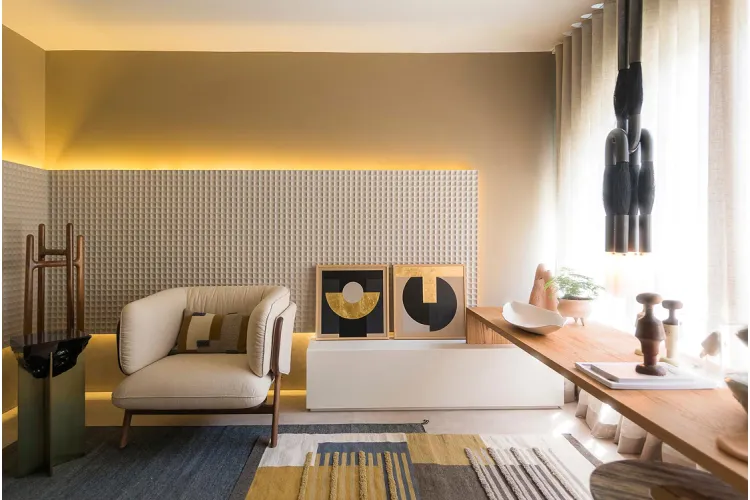Колекція SHADES (серія CREATIVE) вирізняється м’яким, ритмічним рельєфом із плавними геометричними формами, які створюють делікатну гру світла й тіні. Поверхня виглядає тактильно привабливою, з тонкою, матовою фактурою, що додає глибини та візуальної динаміки. Загальний вигляд — стримано сучасний і витончений, ідеальний для створення спокійної, але виразної атмосфери в інтер’єрі.
