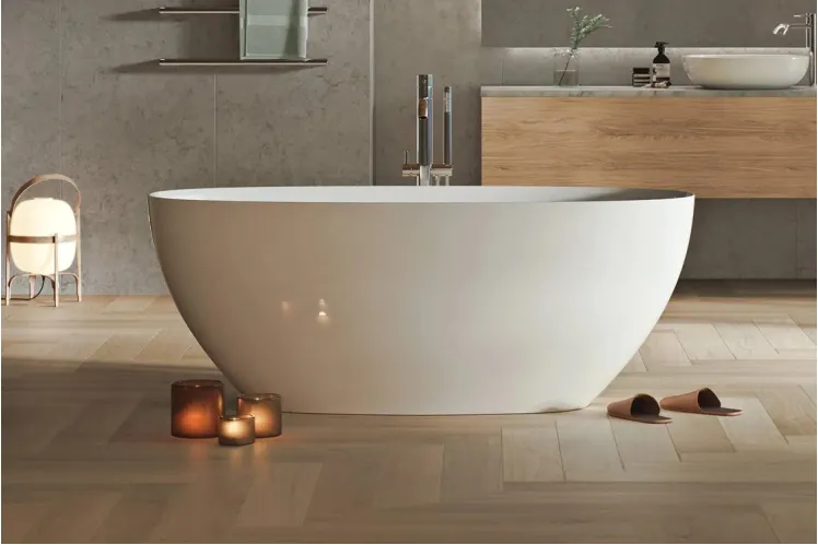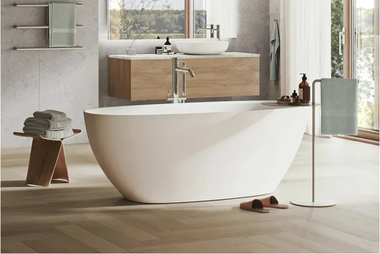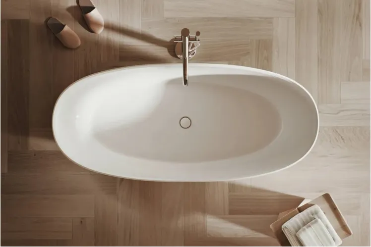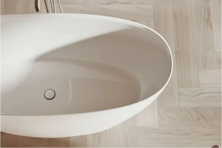 Ванна вільностояча з литого мармуру SANDHAMN 170х70 Gelcoat біла глянцева з сифоном клік-клак