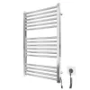 Електросушарка для рушників побутова Гера-I 800х500/80 TR К білий глянець. Обладнана таймер-регулятором та конектором для підключення в розетку з будь-якого боку. Сумісна з комплектом прихованого підключення. Має 16 ребер та стояки з профільної труби. Виготовлена з полірованої нержавіючої сталі без хромування. Варіанти покриття: полірована або сатин, чорний мат, білий глянець, золото, бронза. Температурні режими таймер-регулятора: 40°С, 45°С, 50°С. Варіанти часу роботи: 3, 6 годин та постійний нагрів. Потужність 170 Вт. Додатково для зручності користування можна оснастити навісними гачками.