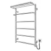 Електросушарка для рушників побутова Hotel-І 1090х530/240 TR К. Обладнана таймер-регулятором та конектором для підключення в розетку з будь-якого боку. Сумісна з комплектом прихованого підключення. Має 8 ребер та стояки з круглої труби. Виготовлена з полірованої нержавіючої сталі без хромування. Варіанти покриття: полірована або сатин, чорний мат, білий глянець, золото, бронза. Температурні режими таймер-регулятора: 40°С, 45°С, 50°С. Варіанти часу роботи: 3, 6 годин та постійний нагрів. Потужність 125 Вт. Додатково для зручності користування можна оснастити навісними гачками.