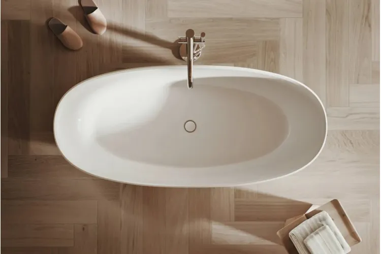 Cтильна та сучасна пристінна ванна JUNE стане ідеальним рішенням для облаштування комфортної ванної кімнати. Виготовлена з литого мармуру, вона поєднує в собі високу міцність, довговічність та естетичний преміальний вигляд.Поверхня ванни покрита захисним шаром Gelcoat, що забезпечує бездоганний білий глянцевий блиск, стійкість до подряпин, вологи та побутових забруднень. Матеріал приємний на дотик, добре утримує тепло води та сприяє комфортному прийманню ванни.Завдяки пристінному типу монтажу модель гармонійно розміщується вздовж стіни, дозволяючи ефективно використовувати простір приміщення. Ергономічна форма забезпечує зручність та максимальний комфорт під час використання.У комплекті передбачено сифон клік-клак, який вирізняється зручністю в користуванні та сучасним дизайном.